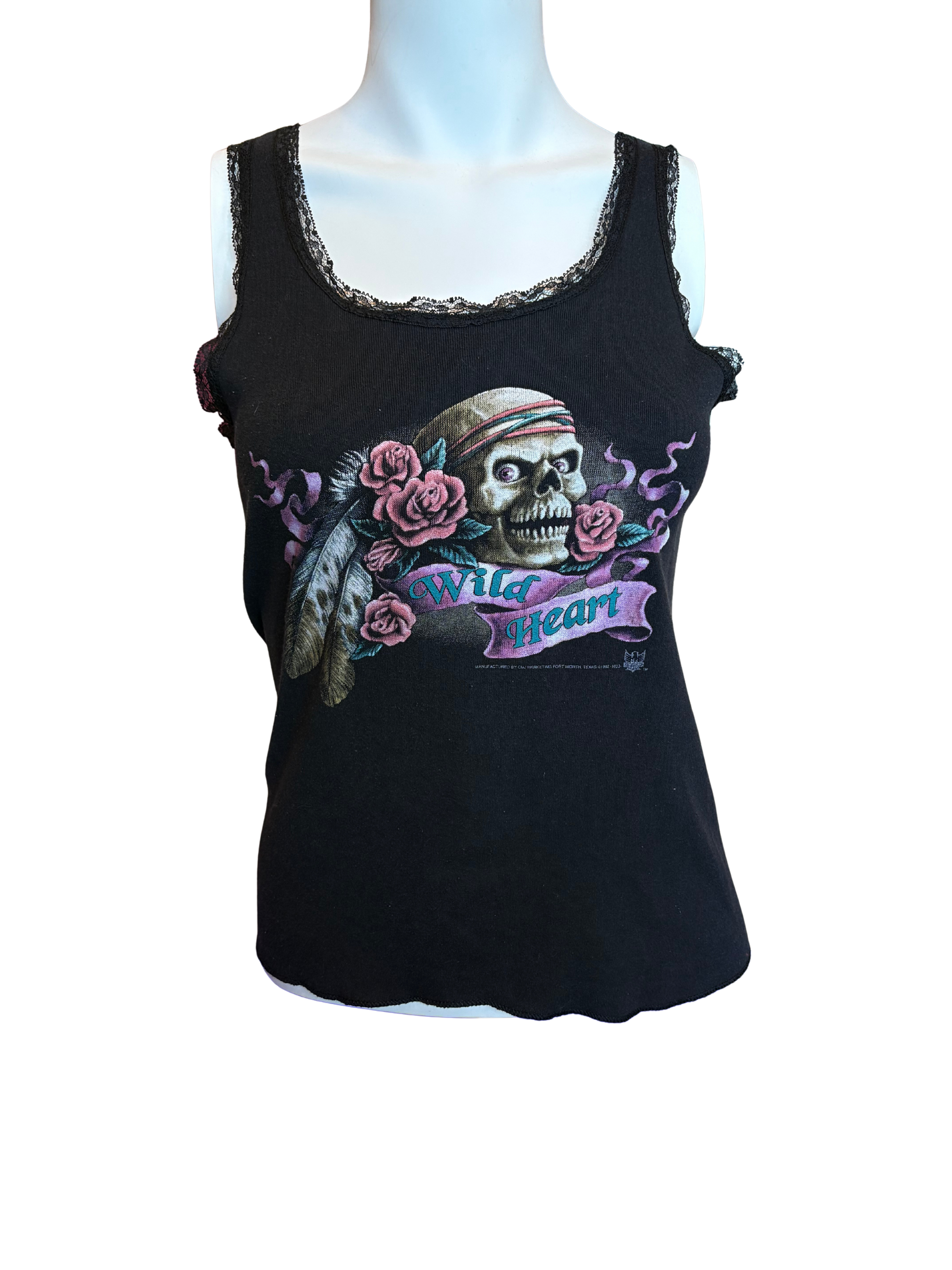 A 1992 3D Emblem Lace Tank Top in Black