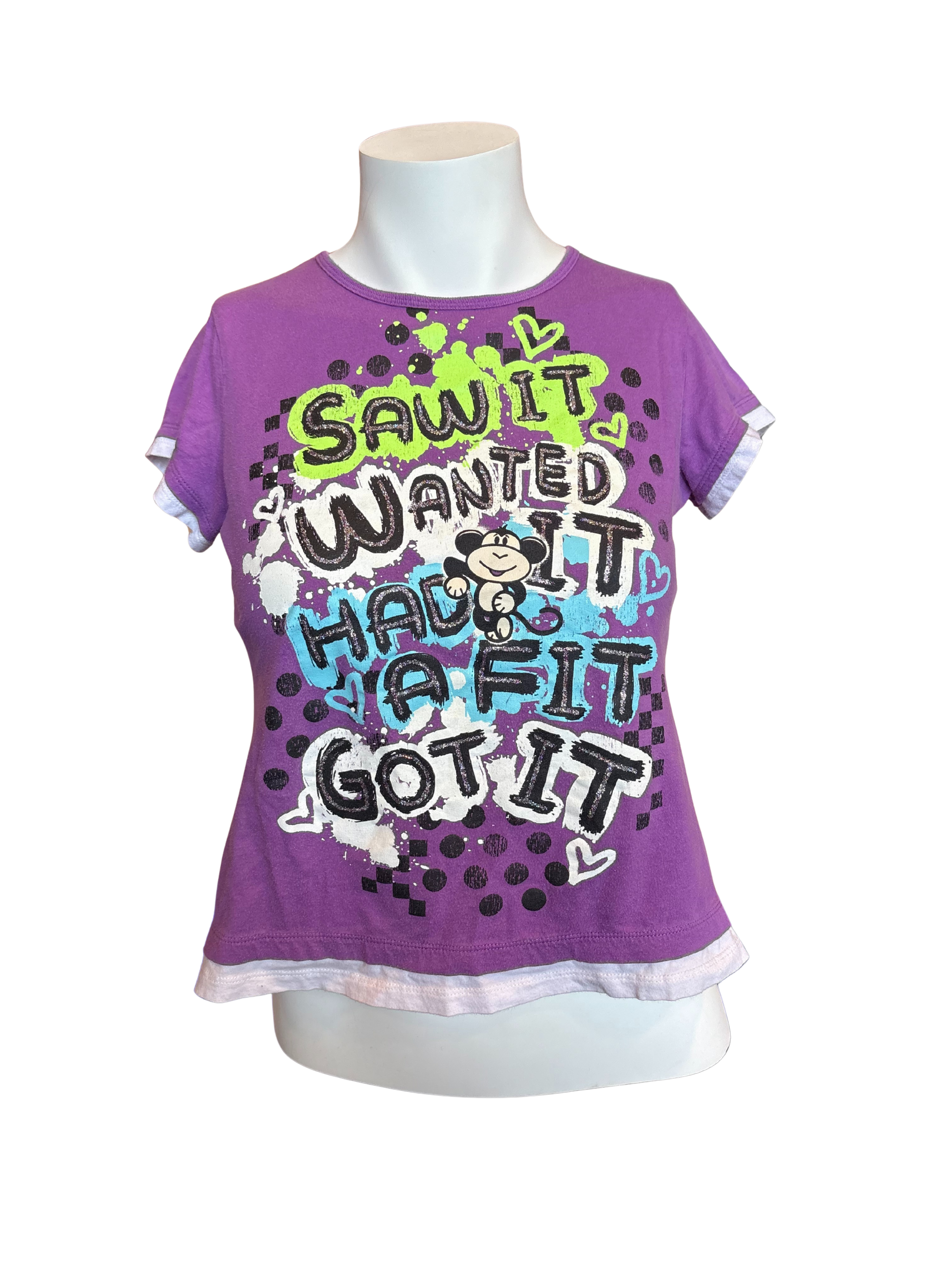 An Early 2000s Purple Graphic Self-Esteem Top.